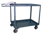 | Product Features: Writing stand 12" by width of cart Durable angle corner construction 1 1/2" shelf lips up for retention Push handle for ease of movement Clearance between shelves = 24" Casters: 5" Urethane - 2 swivel, 2 rigid |
