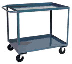 | Product Features: Durable angle corner construction 1 1/2" shelf lips up for retention Push handle for ease of movement Clearance between shelves = 24" Casters: 5" Urethane- 2 swivel, 2 rigid Capacity: 1,200# |