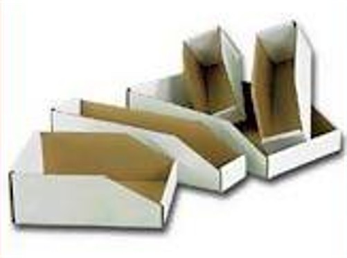 White corrugated bin boxes are easy to assemble with no tape, glue or staples