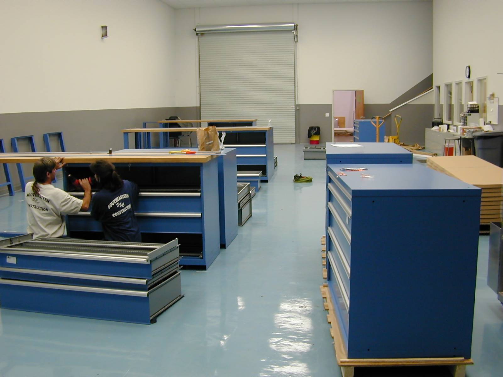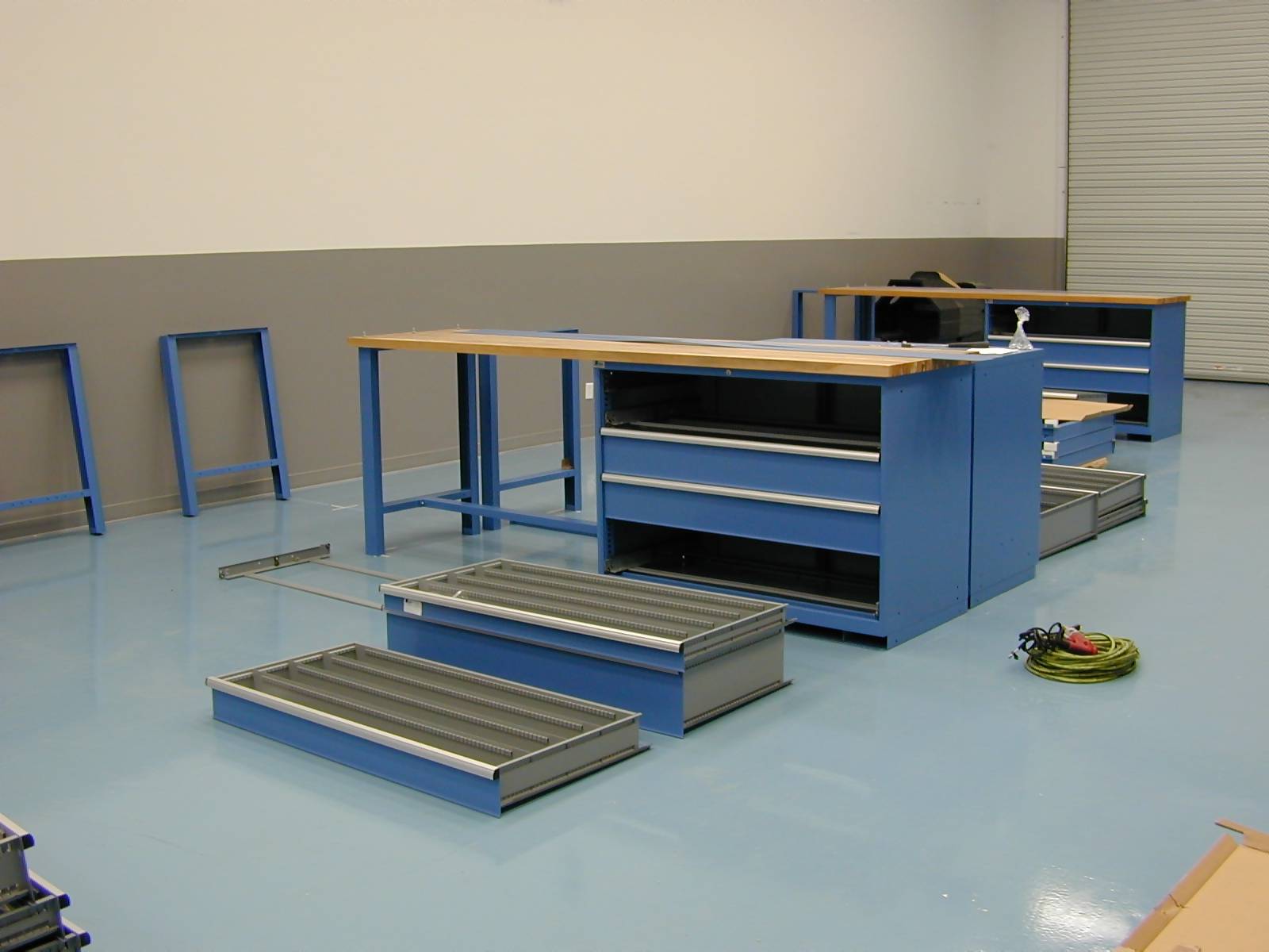 work centers offering overhead cabinets as well as work benches, Rousseau Metal has it